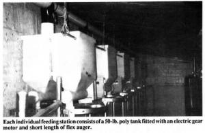 The Accu-Feeder consists of a flex auger which is direct-driven by an electric gear-motor, both of which mount on a 50-lb. capacity polyethylene tank. Installing the self-contained Accu-Feeder doesn't require any structural modification to the barn, unlike other in-parlor feeding sytems. You just wire the feeding units up to brains of the system, which are solid state timers contained in a single control panel. Each individual feeding station has its own control switch. Can be set up with multi-feeding periods (up to 48 per day) for tie-stalls.