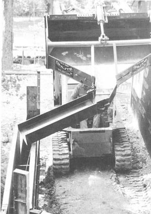 The adjustable spout simply hooks into an existing bucket with three pins. A sliding discharge opening adjusts from a 4 to 11 in. wide and a 36-in. removable extension can be added for increased reach. A 2 1/2 in. cylinder with 8 in. stroke raises and lowers the unit.. A rubber lip between the chute and cutting edge of the bucket seals the unit, which is equipped with a vibrator mounting plate for using a 12-volt vibrator to facilitate pouring less flowable materials.