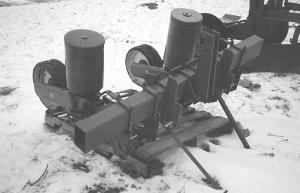 Harvey Malon of Rapid City, S. Dak., wanted to plant small 3 to 5-acre plots of corn and sorghum as food for wildlife on his ranch near White Owl. The problem was he couldn't find an affordable small planter to do the job so he built his own 3-pt. mounted, 2-row unit using row units off a 40-year-old Deere 4-row corn planter.