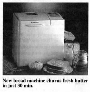 In addition to the butter cycle, the unit includes eight bread programs, a dough cycle, a delay timer, a viewing window, a bread warmer, and a non-stick loaf pan.