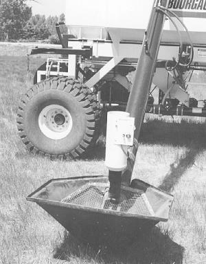 Nuttall Mfg.'s inoculator consists of a poly cylinder that clamps onto the end of the auger. It comes with a constant speed motor that plugs into any 12-volt supply, such as a truck battery. An agitator mounted inside the cylinder keeps the product moving. It consists of a spring-loaded wire that revolves on a steel shaft at the center of the cylinder. There are two controls - an on-off switch and a dial that regulates the speed of the motor, allowing you to control the application rate.