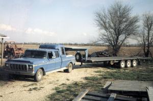 Repowered Pickup Pulls 36-Ft Gooseneck Trailer PICKUPS Modifications It has as much power as a 2-ton truck but costs less to maintain because parts for it are less expensive Also when I m not using it to haul hay we use it like a car That s how comfortable it rides says Nathaniel Regier Newton Kan who repowered his 1978 Ford F-350 1-ton pickup by replacing the original 351 cu in engine with a 429 cu in V-8 368 hp gas engine Regier who runs a custom hay hauling business uses the extended cab 4-door pickup to pull a rebuilt 36-ft long gooseneck trailer The trailer has an extra 8-ft deck over the gooseneck and an 8-ft hydraulic-operated dovetail ramp on back The deck is reinforced by a pair of 10-in steel I-beams and supported by heavy duty triple axles When fully loaded the trailer holds 355 to 400 small square bales and has a gross weight of about 40 000 lbs I deliver hay as far away as Missouri and Nebraska so I also mounted a pickup cab sleeper on it behind the cab Regier salvaged the engine from a 1971 Mercury Grand Marquis car which he got free from his great grandfather I chose the 1971 model because that was the last year that pollution control equipment wasn t required on cars The equipment robs about 100 hp from this engine says Regier He modified the engine to boost power reworking the valves redoing the heads and installing a different cam for improved low end torque He removed the pickup s original 4-speed transmission and used the 3-speed automatic transmission that came with the new engine He rebuilt the transmission and added an auxilliary manual over-under transmission to the automatic transmission It provides three ranges for each gear on the automatic transmission for a total of 9 different speeds He replaced the original 3:73 rear end with a lower ratio 4:10 rear end and converted the original single rear wheels to dual wheels He also replaced the original 14-gal fuel tank with a 105-gal one and reworked the hood so it tilts forward The 8-year-old 20-ft gooseneck trailer was originally equipped with two 3 000-lb axles He removed the axles and replaced them with three 7 000-lb rubber torsion axles that are equipped with electronic brakes and 14 ply radial tires He built an 8-ft sq deck that goes over the gooseneck hitch and also built the dovetail ramp on back which lets him drive tractors or other machinery up onto the trailer I spent a total of $5 200 on the pickup and $2 700 on the trailer I bought the axles from a local company that builds trailers Even with the big engine the pickup has to work a little when the trailer is fully loaded The engine gets about 5 mpg with a fully-loaded trailer which is about the same as I d get with a 2-ton truck or semi However the tires brakes and driveline accessories for my 1-ton pickup cost much less than parts for a 2-ton truck or semi And with a crew cab and four doors my entire family can ride comfortably in it There are two things that I wish I d done different First I d keep the original 4-speed transmission You lose too much power and slip and heat with an automatic transmission Second I d install vacuum-over-hydraulic brakes on the trailer instead of electric brakes for more stopping power I reworked the wheel well fenders inside the pickup bed so the duals don t stick out I also installed new gauges for the engine and transmission oil temperature engine vacuum and fuel tank A hydraulic pump off an old Deere 45 combine operates a pair of hydraulic cylinders that are used to raise or lower the dovetail ramp The pump is belt-driven by an electric starter motor and generator combination The motor mounted under the trailer deck is powered by a self-contained 12-volt battery and is started by turning a key The battery is wired to the pickup s alternator to keep it charged The trailer s top deck has a wood floor while the lower deck has a floor made out of diamond plate steel with rebar across it to reduce the weight The lengths of rebar serve as lugs so that the tires have something to grab onto Contact: FARM SHOW Followup