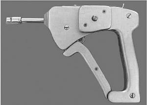 A reversing switch makes it easy to change directions with your thumb. The tool can be fitted with sockets, screw driver bits, torx bits or any other add-on tool. For stationary work, it could also be fitted with a foot-operated lever that attaches to the hand model by flex cable.