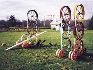 Swing Set Built From Corn Planter Wheels