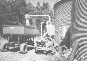 "I've used it for five years on wheat, oats, and corn and it hasn't been in the shop yet," says Larson. "It'll move 350 to 400 bu. per hour. I use it to fill everything from gravity wagons to grinder-mixers to semi trucks. I pull it with my pickup. One time I used it to clean up a big spill at a local grain elevator. I may install a hydraulic pump on it so I can use hydraulic motors to drive the rear wheels and make it self-propelled.