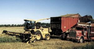 "To do this, your forage harvester must have 4-WD and be heavily weighted on the back end. I used the manufacturer's weights and specifications so that the rear weights equal the weight of the header. Also, a good braking system is crucial," he says. "You have to blow the silage into a wagon behind the forage harvester because the header is too wide and interferes with a truck. A braking mechanism must be built into the wagon so it can't push you down the hill when loaded.