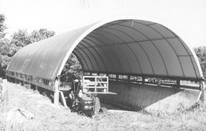 Krier and Long both farm and use their own buildings to raise hogs. "We put up our first six hoop buildings four years ago and have had enough experience with them to know the concept works. We can customize the buildings to suit your needs. We recently put up a 32-ft. wide, 96-ft. long hoop building over a farmer's existing bunker silo. The 24-ft. high roof keeps rain and snow off the operator as well as the silage. The bunker has 8-ft. high pre-cast walls and the roof is high enough to get a lot of silage under it. In the spring when the bunker is empty the owner uses it as a shelter for heifers that are having problems calving."