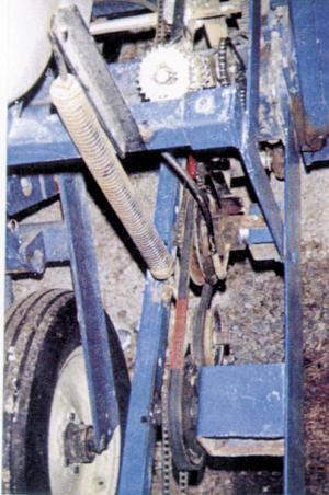 Key to the system is a hydraulic-driven, variable speed drive pulley off an old Gleaner combine. It mounts on the toolbar, connecting to the chain cogs that drive the planter units. Agritronix Corporation of Franklin, Ind., was very helpful updating and programming our monitor with a special chip to record the population every 20 ft. instead of every 50 ft. A faster read-out was needed because you are changing plant population in a relatively short distance.
