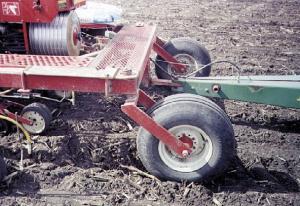 "My total cost was less than $5,000. It saved me a lot of money because new interplanters that do what this rig does sell for about $35,000 to $40,000," says Neubauer. "I used it last spring to plant more than 700 acres of soybeans and it worked great, even though I had to go through some pretty tough wet spots. Yields ranged from 50 to 67 bu. per acre. I planted about 175,000 seeds per acre. I think the narrow 18-in. rows resulted in a 3 to 4 bu. per acre yield advantage, so my Deere interplanter paid for itself the first year. The narrow rows provide early shading which reduces the need for herbicides. I planted some Roundup Ready beans but mostly conventional beans.