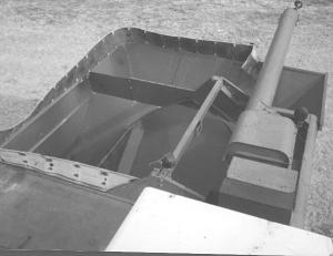 With the engine more or less fixed, Steve cut the back out of the grain tank and, with a few sheets of 1/8-in. thick steel, extended it out over the back axle, essentially doubling its capacity. He left the unloading auger and controls in place, so he can auger off a load into a truck at the end of the field.
