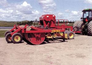 "It's a blader, packer, and seeder all in one. It's unbelievable how many jobs you can do with this rig," says inventor Alvin Almer, Tuttle, N. Dak. "I've used my machine to seed 1,500 acres of canola, 1,500 acres of alfalfa, and 20 acres of flax. I recently used it to break up 150 acres of rocky pasture ground in which I intend to plant crops. I got the idea for it three years ago when I wanted to break up my CRP ground so I could farm it. The field was badly infested with pocket gopher mounds, and I needed a machine that could level them off so I wouldn't damage other equipment.