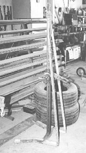 Joe Strullmyer, St. Peter, Ill.: "I use this modified free-standing jack to lift objects in my shop. It's always ready to go and saves a lot of time and effort. It's supported by a base made from square steel tubing and is held steady by a pair of steel rods that extend from the back of the base up to the top of the jack. The expanded base assures a better foundation to lift from if I want to use it outside the shop in soft areas. A long handle provides extra leverage when lifting the object. I recently used the jack to lift a broken spray boom."
