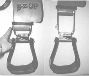 "If mounting your horse is making riding a chore, the E-Z Up Stirrup Extender can give you a leg up and put the fun back into riding," says Judi Rusk of E-Z Up. "It drops your stirrup down with the push of a button and locks back into place with a lift of your toe."