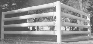 Four horizontal 11-ft. pipes, with posts and bolts, sell for about $10 per running foot; three 11-ft. pipes, $7.75; two pipes, $5.60. The fence decreases in price as you go to longer pipes.