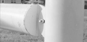 Made entirely of 6 5/8-in. dia 11-gauge steel tubing, the fence can be set up with either two, three, or four rails. A metal tab welded onto each end of the rails fits to tabs welded onto the vertical post. To put the fence together you insert a single 1/2 by 1 1/2-in. bolt through a slotted hole in each of the tabs.