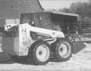 If you've ever wished your skid loader could go faster or make it through deep mud or manure without getting stuck, you'll be interested in how Gary Meyers modified his Melroe 763 Bobcat. The Aberdeen, S. Dak., farmer replaced the original 10.00 by 16.5 tires with taller, narrower, lugged 9.5 by 24 tires that he mounted on wheel rims off a Versatile swather.