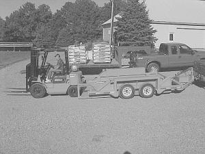 The Schmidts, owners of Holstein Manufacturing, Holstein, Iowa, put together a trailer with a deck that lowers flat to the ground hydraulically. "Safety is the number one feature of this trailer. There are no ramps, no tipping, no lifting, and no ramps to drop and fold back up again. It makes it easy for one person to load something onto it."