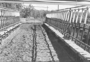 Feed is moved through 190 ft. of 3-in. dia. flexible auger to 40 drop spouts along the length of the feed trough. The spouts are spaced 30 in. apart, allowing four or five animals to feed from each spout.