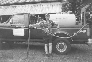"I have a 200-gal. tank with a pump and long hose mounted on the back of my Ford diesel pickup. Restaurants contract with me to haul away their used oil," he notes.