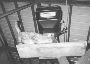 "We've had this cat around for awhile, and he stays in the shed most of the time," says the Oregon, Ohio, farmer. "And as long as I've had this shed, I've had bird problems. I've put up scare balloons and even owls trying to keep the birds away, but nothing worked."