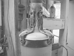 Ken Sharabok, Waverly, Tenn.: "Bushhogging is hard on a muffler. If a limb doesn't reach out and knock it around, the back and forth jarring tends to weaken or break the weld at the bottom. When I put a new muffler on recently, I made a bracket out of strap metal and angle brackets. The welding is kind of ugly but it's strong. (Muffler is upside down in photo.)"
