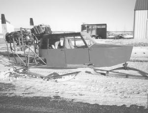 The first snow plane he bought was in pieces. To rebuild it, he had to do a lot of fiberglass work to repair the body. He also rebuilt the Lycoming 125 engine and put on new skis.