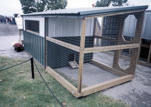 Poultry yard - With a screened-in area adjoining a large enclosed room, this building is part laying house and part free-range shelter. It comes in 6 and 9-ft. widths and lengths from 12 to 18 ft. It's 5 ft. tall at the back and 6 ft. tall on front. The unit comes with operable windows, 3-ft. wide door, chicken door, screened-in porch, and rubber bottom sweeps. Options include egg boxes, outside egg collection door, lights and timer. "It's totally confined and predator proof," says Greg.