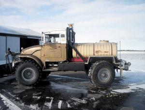 "In places where the embankment goes up to a point where you can't get through normally, this truck allows you to turn shorter and run at an angle with the back end higher than the front," he says. "It provides more safety in tight situations."
