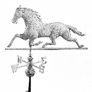 The company's weathervanes are all made from copper (shiny or antique finish) and are available in three different sizes.