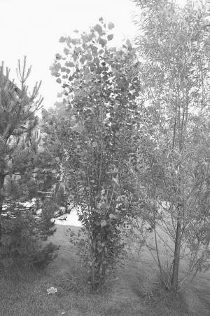 One other note: Rocky Mountain Austrees, sells a couple of other fast-growing varieties which I tried. The Golden Pannier is a gold-leafed hybrid that's designed to be a shade tree, with bigger leaves and spreading branches. The three trees that I planted looked good briefly in the spring but the leaves turned black as the summer went on. They were sickly and I cut them down after a year.