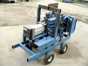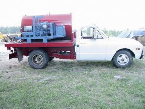 "It works better than using a gas engine powered water pump because I don't have to carry anything down to the water," says Carpenter. "The generator was originally designed to mount on wheels, and I use it often to operate drills and electric impact wrenches. To mount it on the truck I remove the wheels and then use a chain hoist to lift it onto the bed.