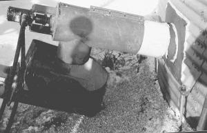 "The hopper for the auger is also home-made. I welded a collar on the main tube so I can take off the hopper and use the standard open flighting. This is especially useful if I need to go through a door opening," says Richard. "With the hopper attached to the auger I don't have to use a shovel to clean it out," he notes. "If I had to start over the only modification I would make is a larger 10-in. pipe to handle a larger auger."