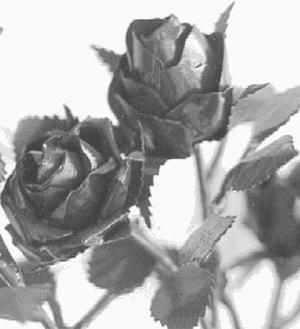 The first rose he ever made took him 4 1/2 hours, but now he can do one in anywhere from 15 to 35 minutes. These roses measure 1 1/2 to 2 in. across, and he sells them for $35 each.