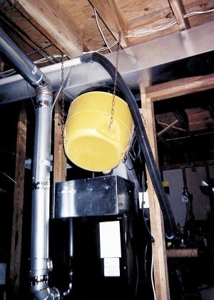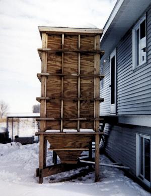 Tietz harvests five acres of corn each year for wildlife feed and house fuel. His Traeger furnace was built to burn corn. The only hassle was getting the corn to it. Tietz solved the problem by building a small grain bin just outside his house and running a 1 1/2-in. dia. pipeline from the bin to his furnace. A shop vac is plumbed into the end of the pipe inside the house.