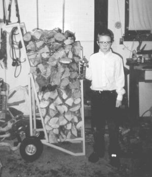 Fogg's upright carrier is based on the furniture dolly concept, with two 4-in. pneumatic wheels on a 3/4-in. axle in the back, but it has a basket built onto the front that holds 50 to 70 standard fireplace sized logs.