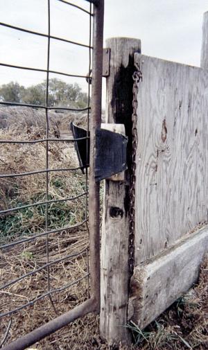 I use a chain to secure the gate whenever I'm not going through it, to keep livestock from pushing it open. Before, when I left the tractor to open the gate, livestock might get out. Now I can just bump the gate and go on through. (Buzz Kutzler, 20499 399th Ave., Huron, S. Dak. 57350 ph 605 352-8177)