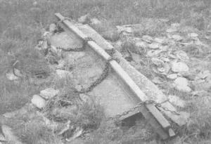It consists of a 2 by 8-ft. piece of 1/4-in. plate steel and an 8-ft. length of railroad rail. There's an 8-ft. long piece of 1 by 6-in. flat iron on top of it for ballast, along with some pieces of 1/4-in. steel stock and re-bar. A tow chain slips over a ball or pintle hook.