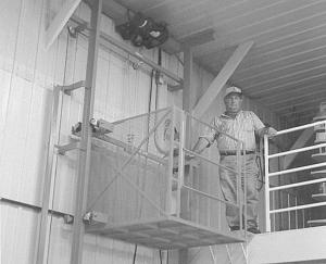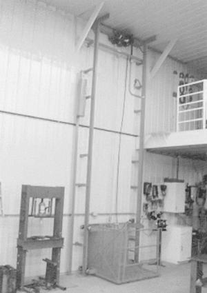 "It takes up less space than stairs and works fast," says Zimbelmann. "The cage is big enough that I can load tools and other parts and equipment on it."