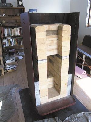Also, because the stove has 1,100 lbs. of firebrick in it, it has to be assembled after the shell (the steel skin) is in place in the house. The completed stove weighs around 1,400 lbs. Nicolaisen says stove builders should give some thought to whether the floor will support the extra weight.
