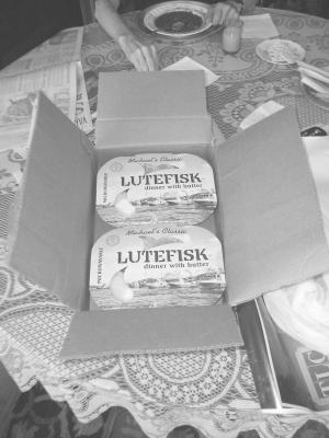 Harold, by the way, said the dinners were delicious.  Mike's Fish sells lutefisk by mail for $5.49/lb. For more info, contact Mike's Fish & Seafood, Inc., 260 Hwy 55 North, Glenwood, Minn. 56334 ph 800 950-4755 or 320 634-5146; www.lutefiskmike.com).