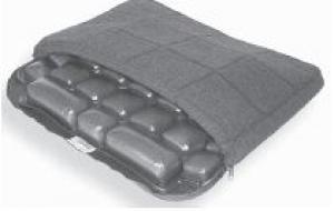 The Airhawk comfort seating system is a 19-in. sq. polyvinyl cushion with a breathable outer cover and a non-skid vinyl base. The interior of the cushion is made up of individual, interconnected air cells that allow air to slowly transfer from chamber to chamber and evenly distribute body weight. A hand pump is used to fill the cells with air. The amount of air pressure can be adjusted as needed.
