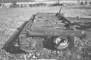 "It works great on rocks anywhere from three inches in diameter to as big as a basketball," says Dietz. "I use my Ford 100 hp tractor to pull it and run the shanks three to four inches deep. I drag the rocks to any location where it's convenient to pick them up later, then hydraulically raise the cultivator to deposit the rocks. The shanks are spaced quite close together so it does pull quite a bit of dirt with it."