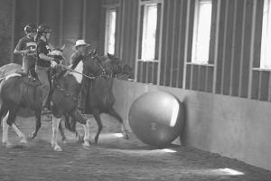 "If you just go out there and start rolling that ball at your horse, you're going to scare him to death," says Miller. "There's a specific training method you use to get them to kind of hook onto the ball and push it."