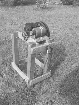 "The 1/3 hp motor is barely sufficient, so some modifications were needed," Nachamkin says. George added a spare wheel to the machine for extra flywheel action. This helped considerably, as long as we weren't too enthusiastically loading the hopper. An overflowing hopper crammed full of large hard apples could slow the motor to a stall if we aren't careful."