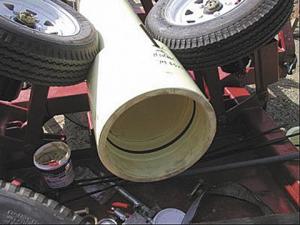 Inventor Paul Burkner of Lodi, Calif., told me the 3-pt. mounted "Golden Retriever" was designed specifically to handle "Certaloc" irrigation pipe, using rubber tires to push 30-ft. sections of pipe out into the field at the beginning of the growing season and then pulling it back out at the end. The unit can handle pipe ranging in size from 3 to 12 in. in diameter.