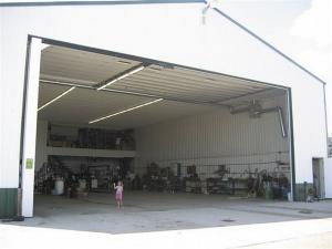 Key to the design is a moveable support post between the two overhead doors at one end of the building. The Richters can use either the 16-ft. door or the 24-ft. door, or they can open them both and move the support post out of the way.