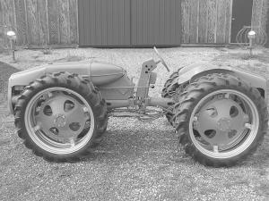One of the tractor's generators was replaced by a hydraulic pump, which operates the steering system. The hydraulic oil reservoir is located behind the seat and in front of the radiator.