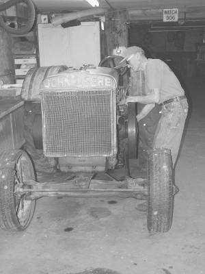 He has restored a 1945 Deere model H, a 1936 International Harvester "F12", a 1928 Deere model D, a 1937 Deere model B, a 1950 MT with a single front tire and 3-pt. hitch, a 1950's era Deere R Diesel, and a Deere AR.