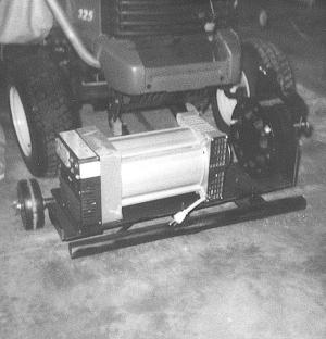 "At first I had to run the tractor almost wide open, at 3,600 rpm's, in order to produce 110 and 120 voltage and also 220 voltage. It was too noisy and was hard on the governor. To solve the problem I replaced the original pulley with a smaller 1/2-in. dia. one. Now the tractor's engine runs at about 2,700 rpm's and is much less noisy."