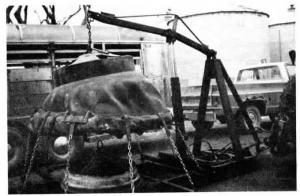 Maasdam says the biggest problem is that after the tire is flipped, there are buckles in the tire because some of the lugs are bowed inward and some bow outwards. At rust he says they punched them out with their feet but that was hard on their backs. So they came up with a hydraulic "puncher" that uses an 8-in. cylinder to round out the flipped tires. That device works great, he says, and makes the entire job "fun to do".
